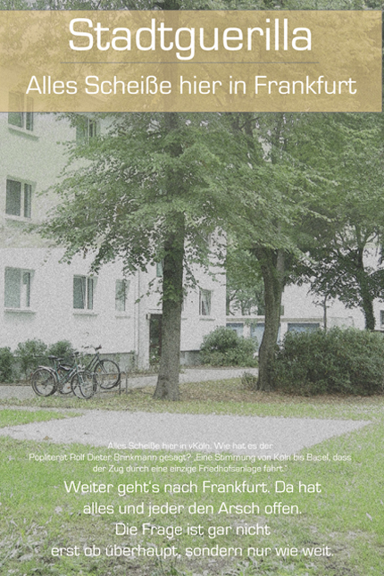 Serie zum Fotoroman, die Teile des Konzeptes aufgreift: Strukturen im Informationsmeer, die sich formieren, zerfallen, verändern, sind die Eigenleistung eines subjektiven Beobachters und von der Zielsetzung seiner Beobachtungen abhängig. Überschwemmung unseres Alltags mit stilisierten Strukturen, die auf Wiedererkennungswert setzen, aber durch ihre Masse Verwirrung stiften. Dazu gehören auch Gebäude von Organisationen, Behörden und Wirtschaftsunternehmen, die auf Erreichbarkeit und Repräsentation getrimmt sind.